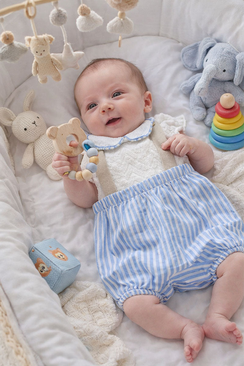 Pagliaccetto neonata in tela di cotone organico con colletto e maniche a palloncino