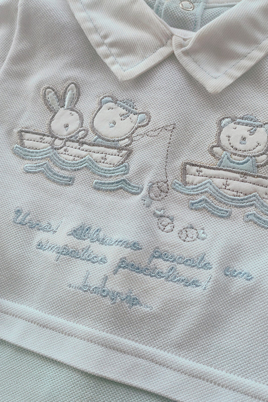 Completo 2 pezzi in cotone a manica lunga in piquet con ricamo