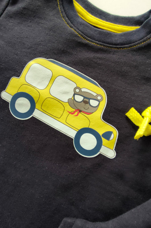 Completo 2 pezzi in cotone organico - Body mezza manica con stampa e bermuda con bretelle in mussola