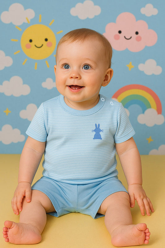 Completo corto in cotone rigato con stampa coniglietto e pantaloncino