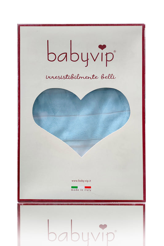Copertina in piquet con stampa coniglietto e bordo rigato.