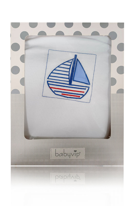 Copertina in tela di cotone fantasia ancorette con applicazione rigata
