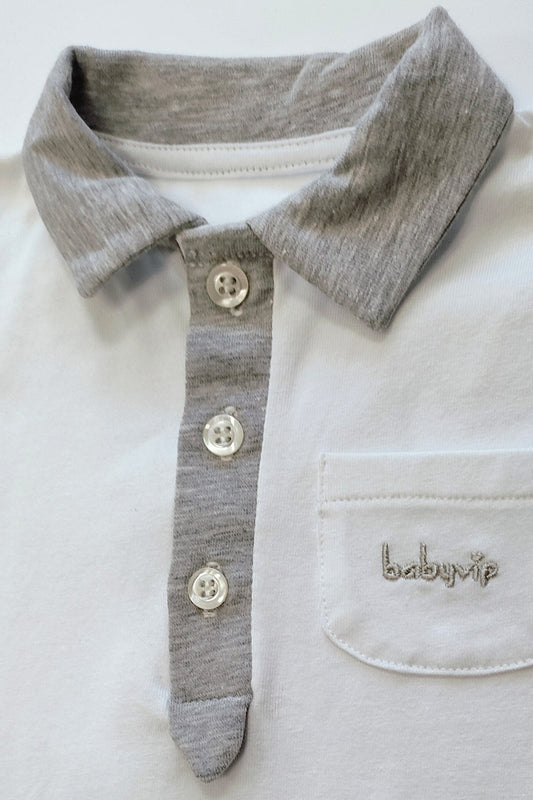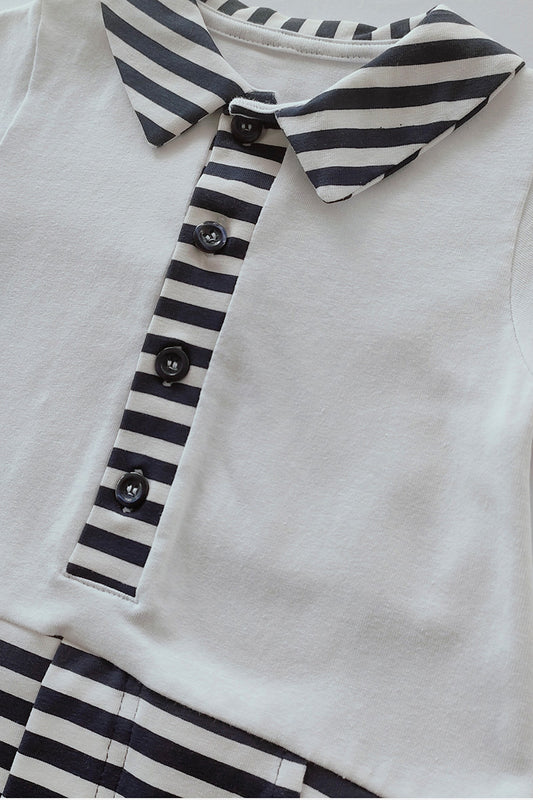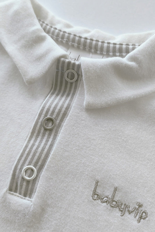 Pagliaccetto mezza manica in cotone elasticizzato con colletto ed inserti rigati