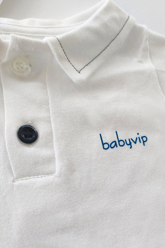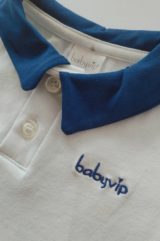 Pagliaccetto mezza manica in cotone elasticizzato con colletto e ricamo