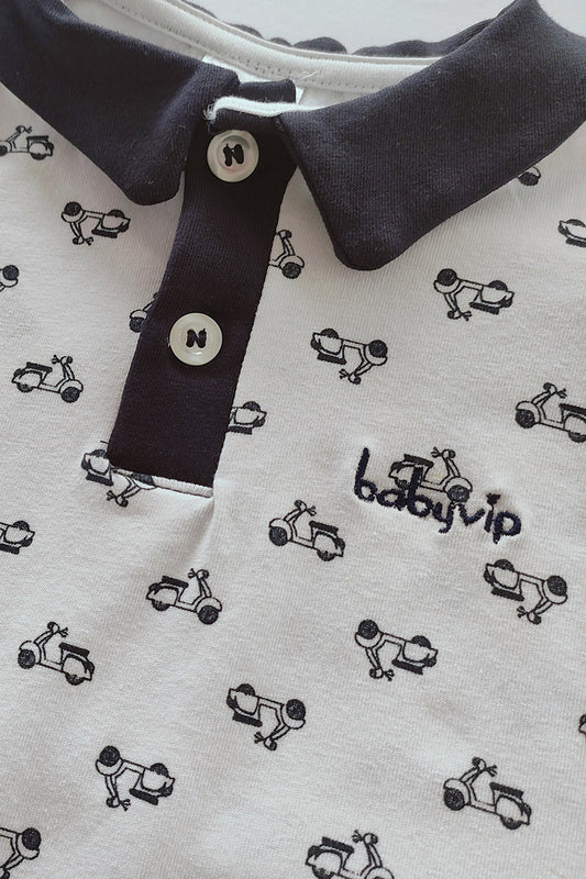 Pagliaccetto mezza manica in cotone con abbottonatura e stampa