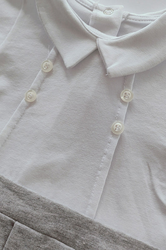 Pagliaccetto mezza manica in cotone con taschino e cravattino