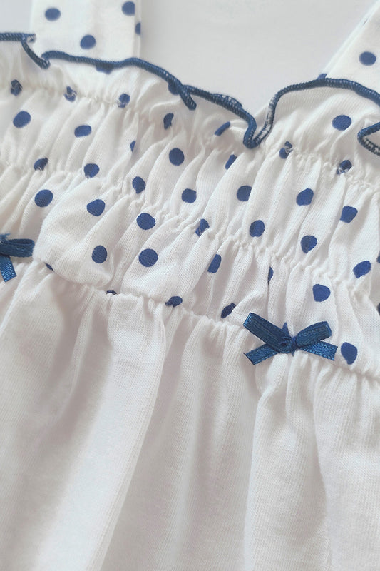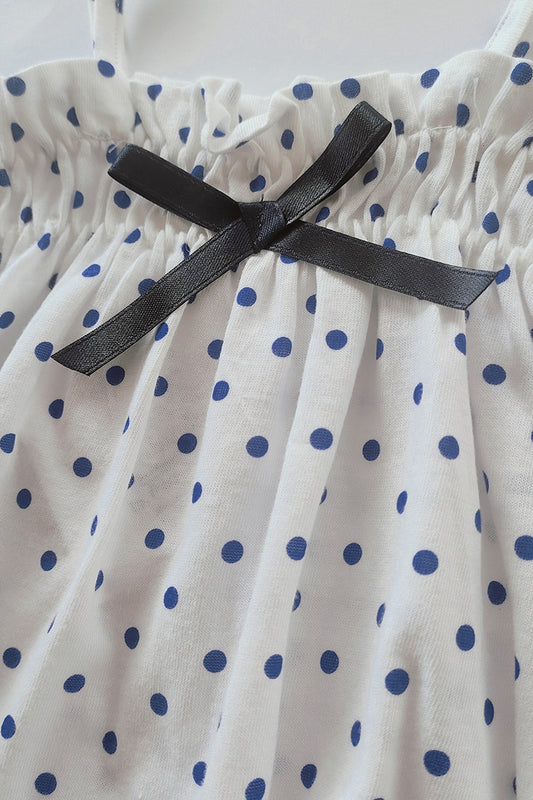 Pagliaccetto spalla stretta in cotone a pois con fiocchettini e strass