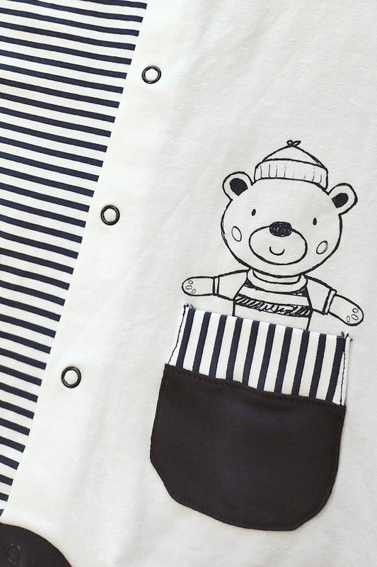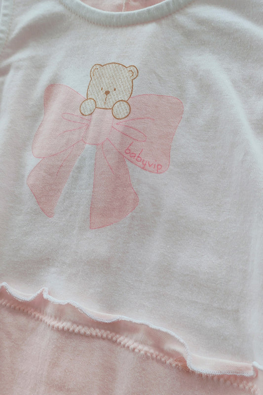 Pagliaccetto spalla larga in cotone con stampa fiocchetto con orso