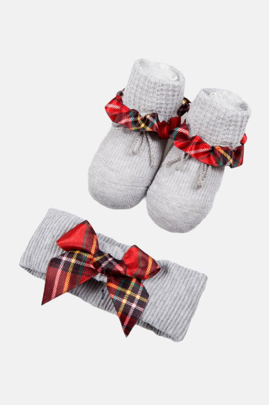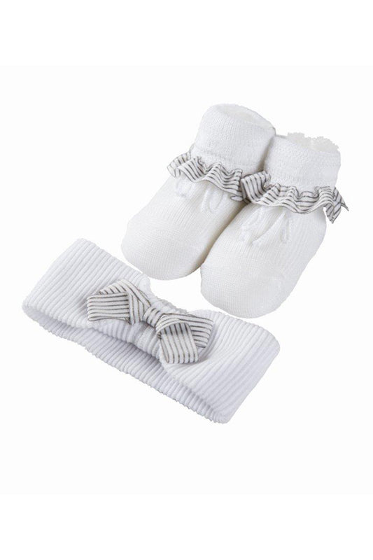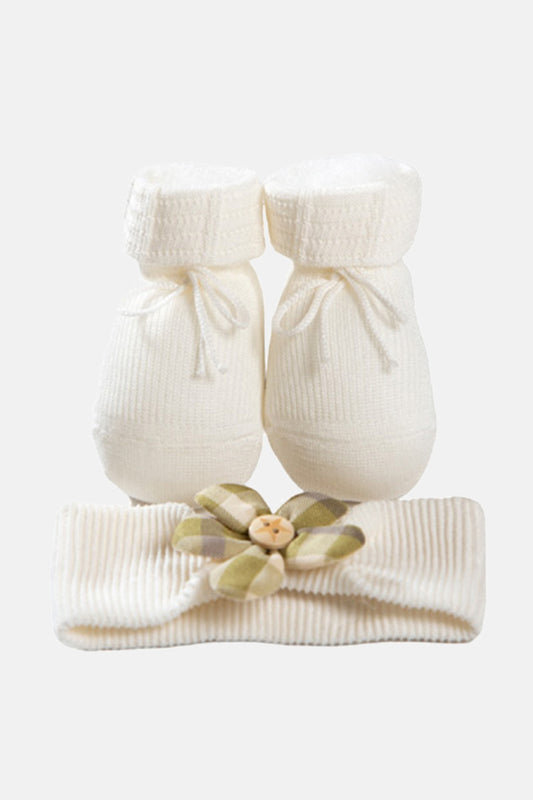 Set Scarpina neonato e fascia in cotone mercerizzato con applicazione fiocco
