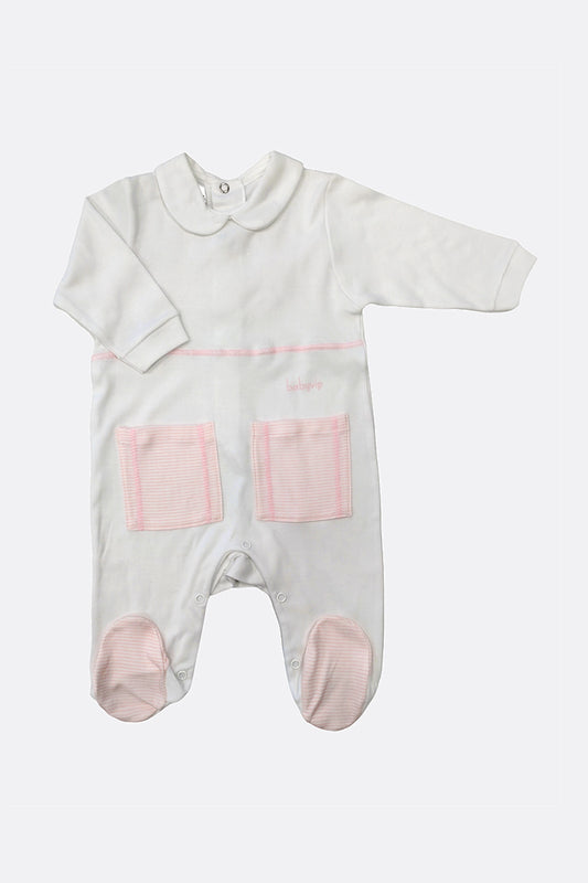 Tutina in cotone elasticizzato con inserti rigati e ricamo