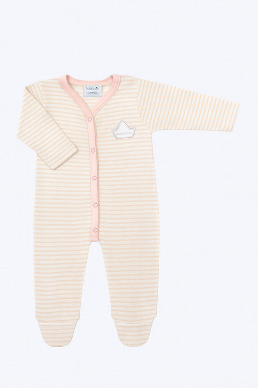 Tutina in cotone fantasia rigata con stampa lato cuore
