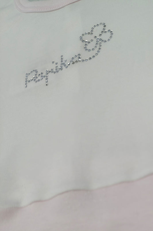 Tutina in cotone jersey con ricamo fiori e inserti in pizzo + strass