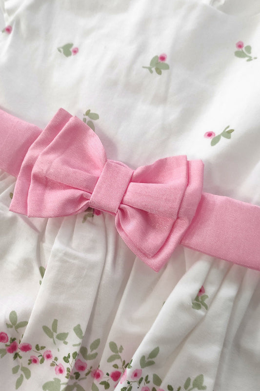 Vestitino in tela di cotone fantasia floreale con nastro in gros grain + fiocco
