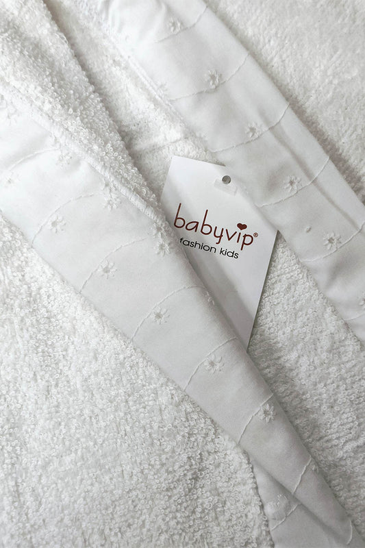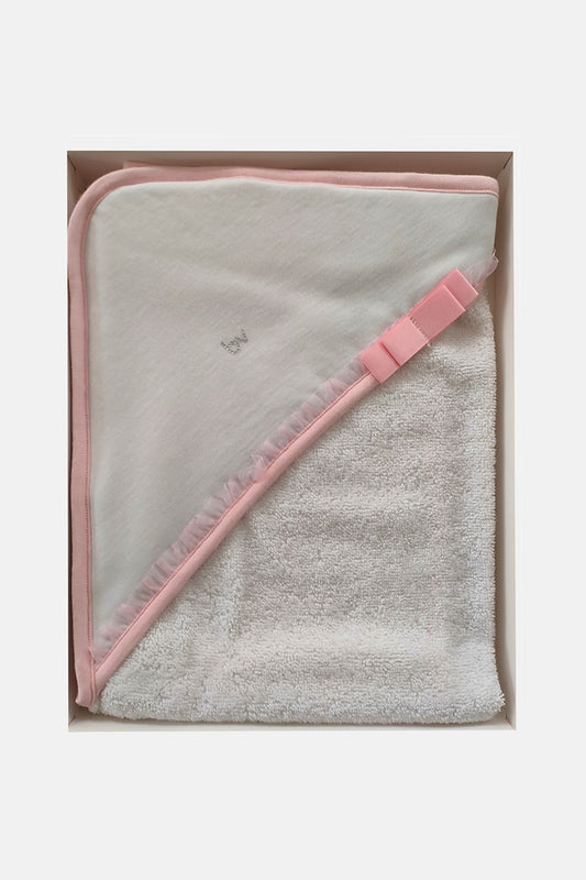 Accappatoio a triangolo in spugna con ricamo cuoricini e nodino