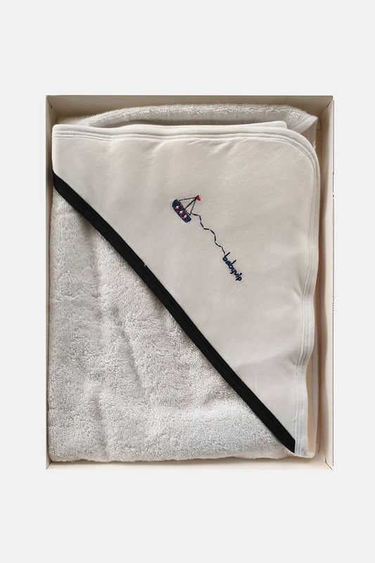 Accappatoio a triangolo in spugna con ricamo barchetta