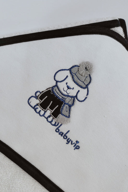 Accappatoio in spugna a triangolo con inserto ricamato cagnolino