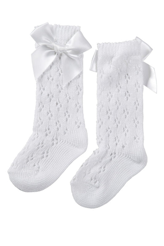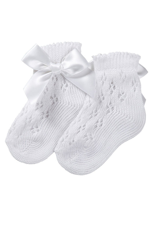 Calzino gambaletto traforato con applicazione e fiocco in cotone mercerizzato