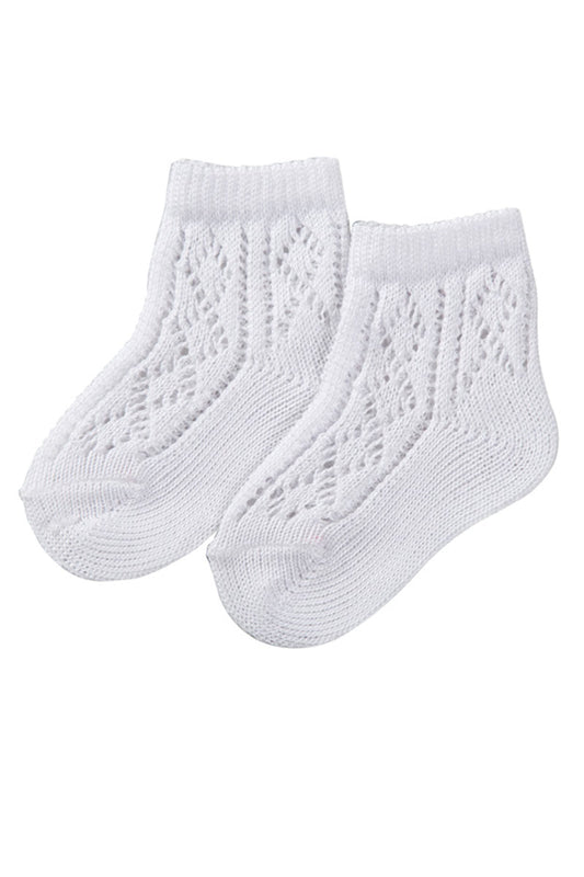 Calzino corto traforato con applicazione e fiocco in cotone mercerizzato