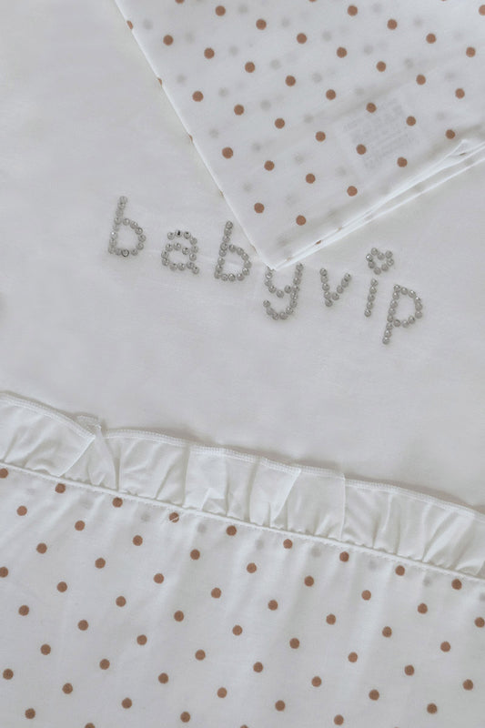 Set lenzuola 3 pezzi per carrozzina e culletta con pois e strass
