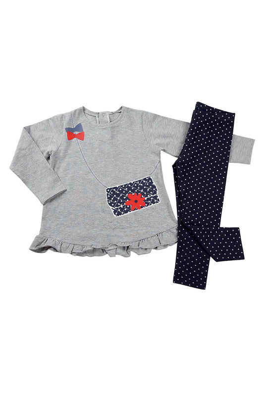 Completo 2 pezzi: T-shirt in cotone elasticizzato garzato con stampa - leggings fantasia cuoricini