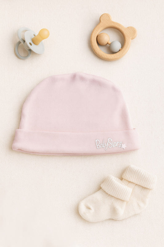 Cuffietta neonato e neonata in cotone caldo con risvolto e stampa silver