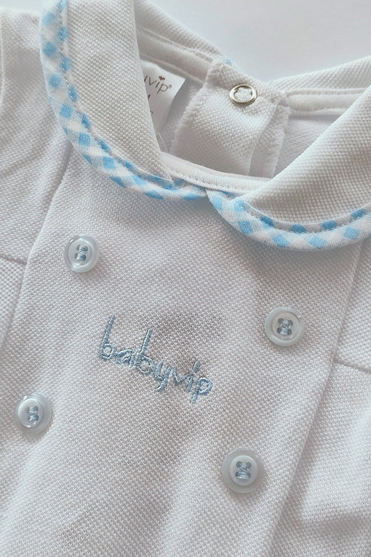 Pagliaccetto mezza manica in piquet con profii vichy e ricamo