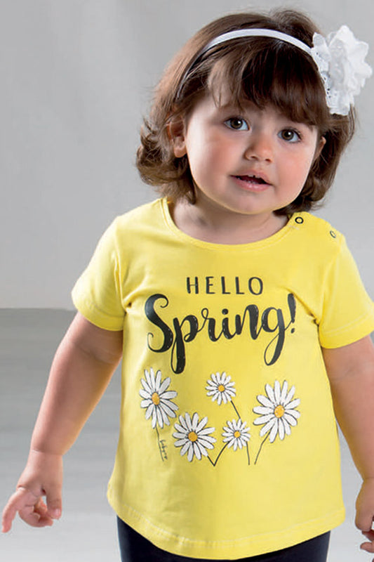Completo in cotone elasticizzato con stampa, e leggings in contrasto