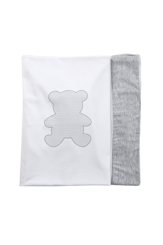 Copertina in piquet con stampa coniglietto e bordo rigato.