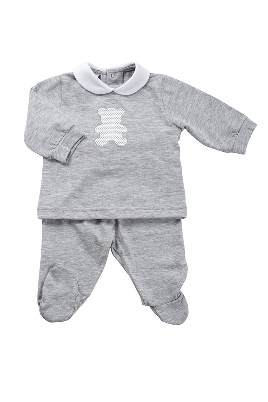 Completo 2 pezzi con ricamo farfalle e inserti a pois