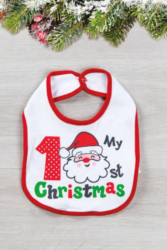 Bavetta neonato con stampa natalizia e bordo in contrasto