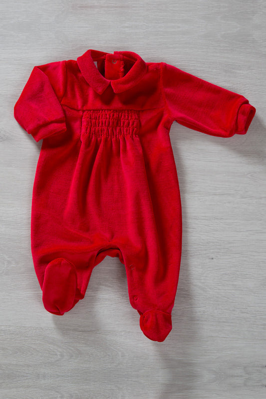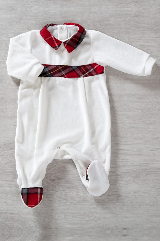 Vestitino in ciniglia con colletto in flanella scozzese + fiocco applicato e gonna arriciata