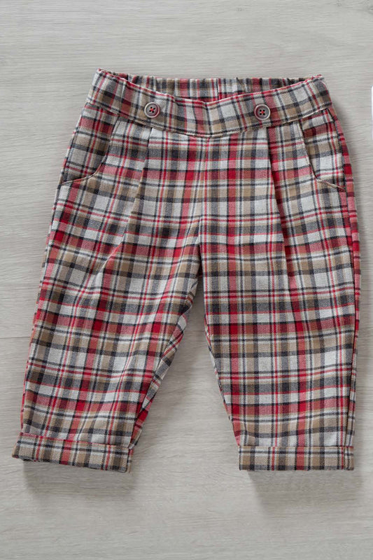 Pantalone in flanella scozzese con pence e bottoni in contrasto