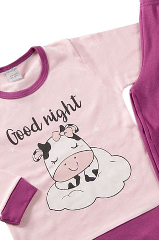 Pigiama in caldo cotone con stampa e pantalone in contrasto