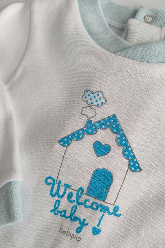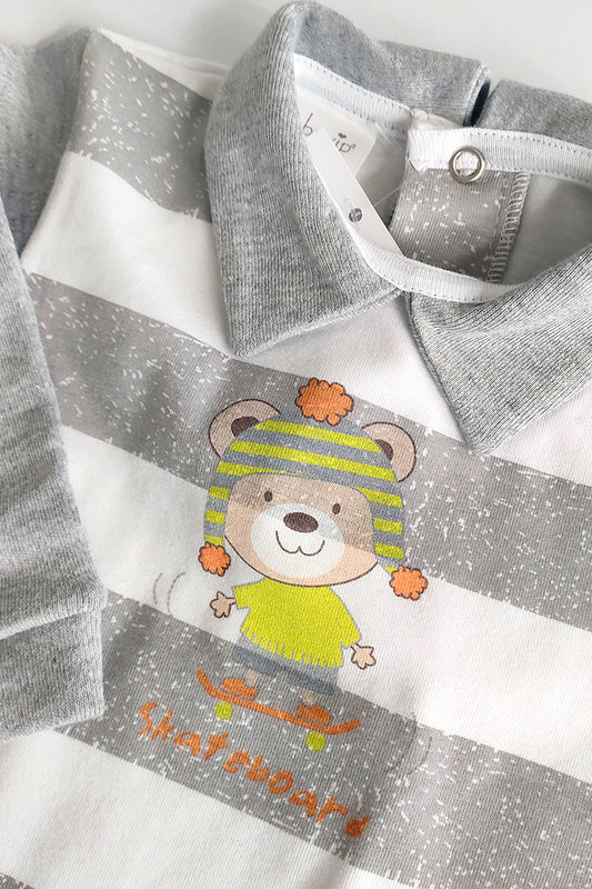 Pacchetto nascita 2 pezzi con body rigato con colletto e copertina in cotone con stampa