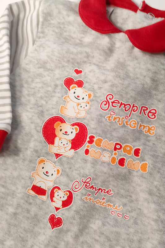 Tutina in felpa garzata con nastro in velluto e cuore applicato