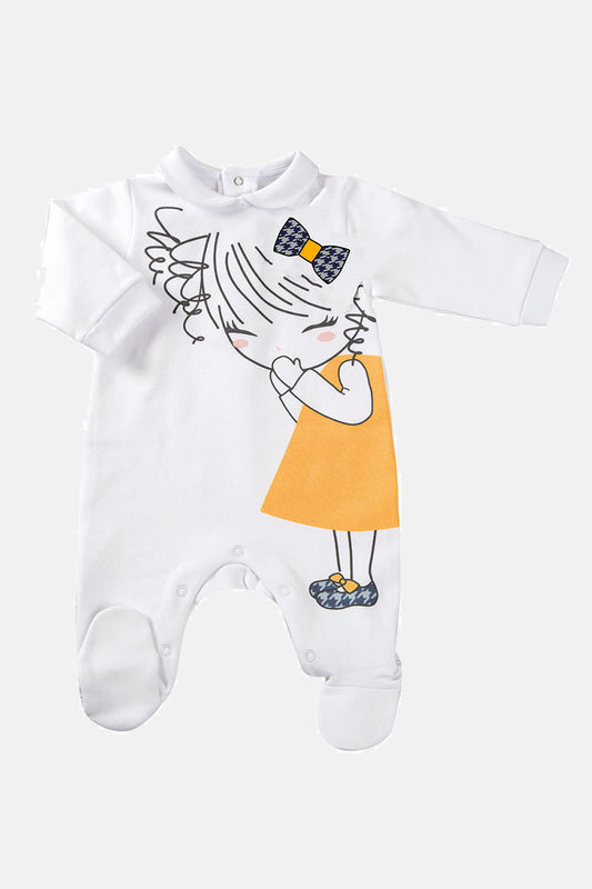 Tutina in ciniglia con inserti in pizzo, colletto smerlato e nodini