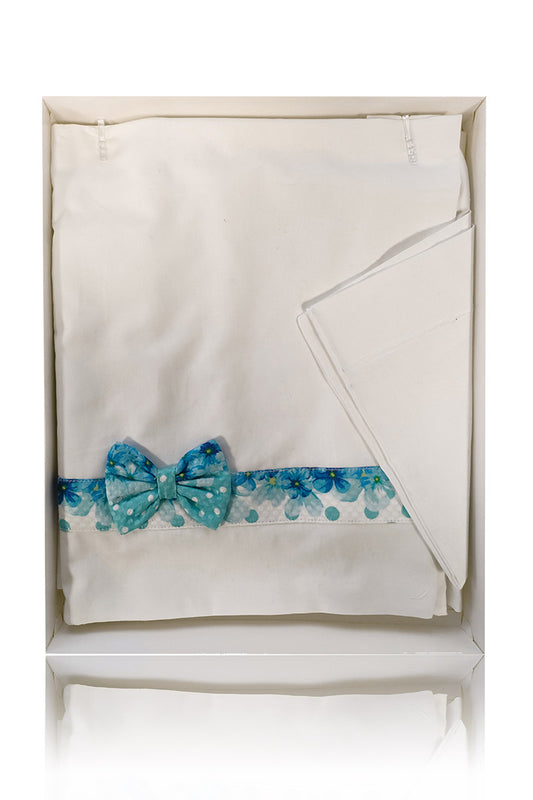 Set lenzuola 3 pezzi per carrozzina e culletta con fiocco