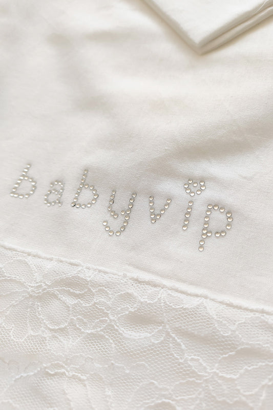 Set lenzuola 3 pezzi per carrozzina e culletta con pizzo raschel e strass