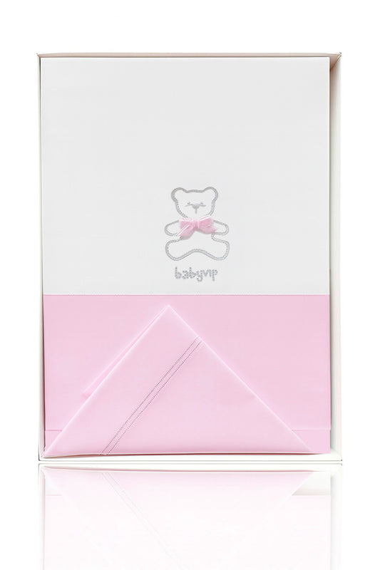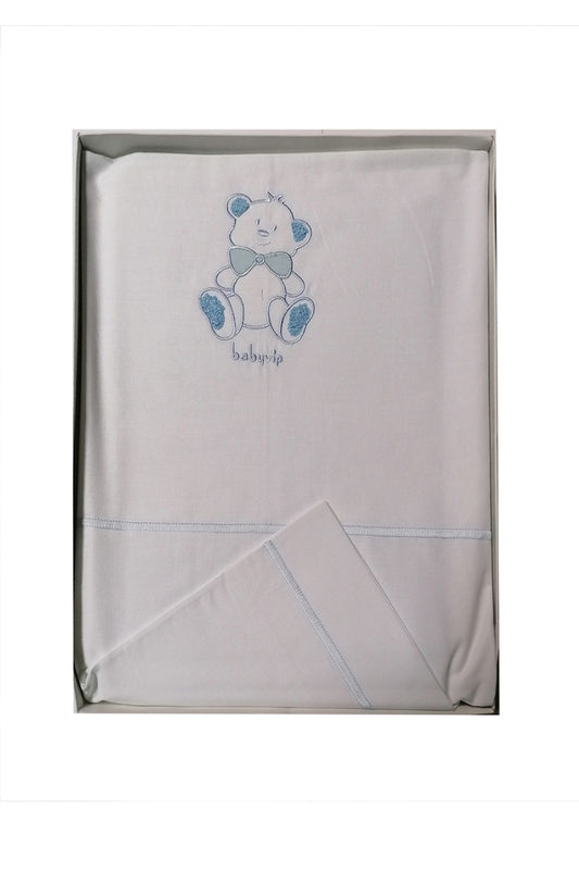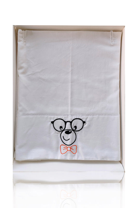 Set lenzuola 3 pezzi per carrozzina e culletta con ricamo orsetto