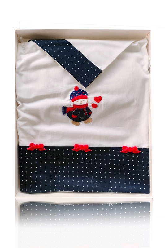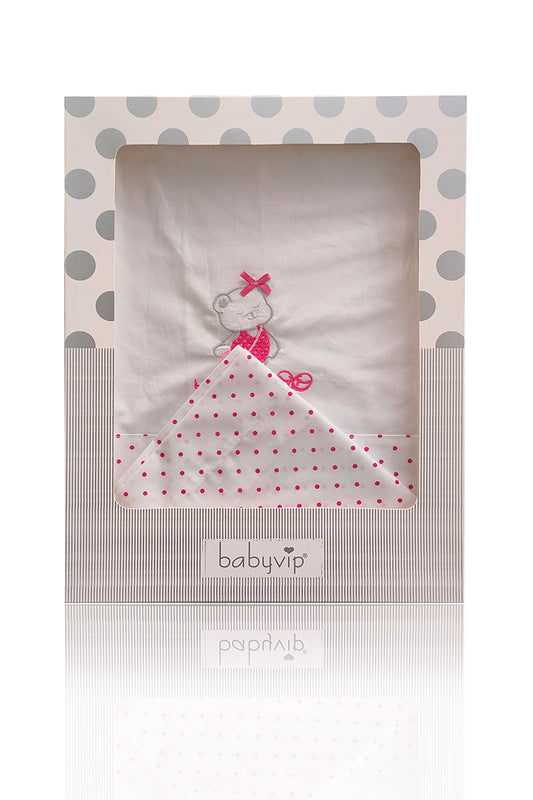 Set lenzuola 3 pezzi per carrozzina e culletta a pois con ricamo orsetta