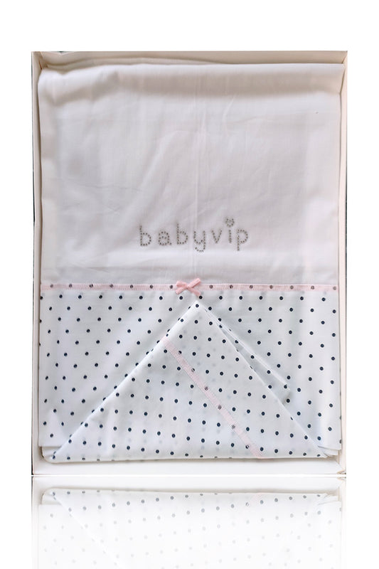 Set lenzuola 3 pezzi per carrozzina e culletta a pois con strass