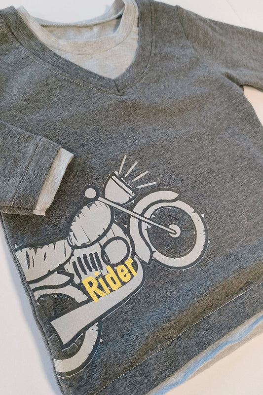 T-shirt manica lunga in cotone elasticizzato con stampa ed inserti