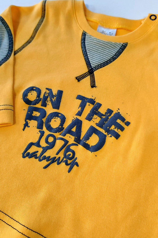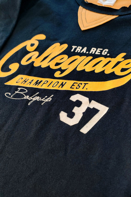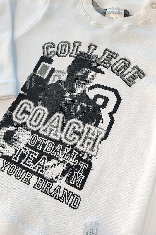 T-shirt manica lunga in cotone con stampa a rilievo ed abbottonatura sulla spalla