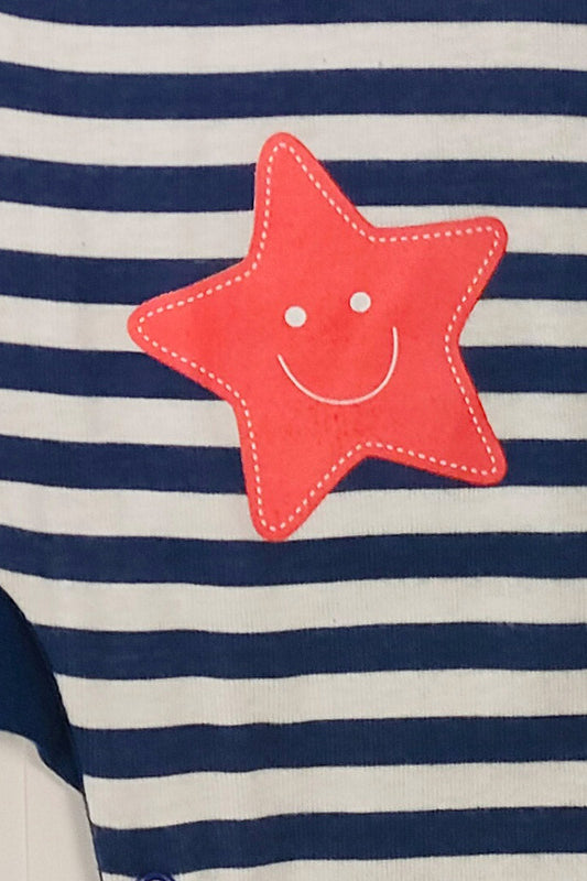 Tutina in cotone fantasia rigata con stampa lato cuore
