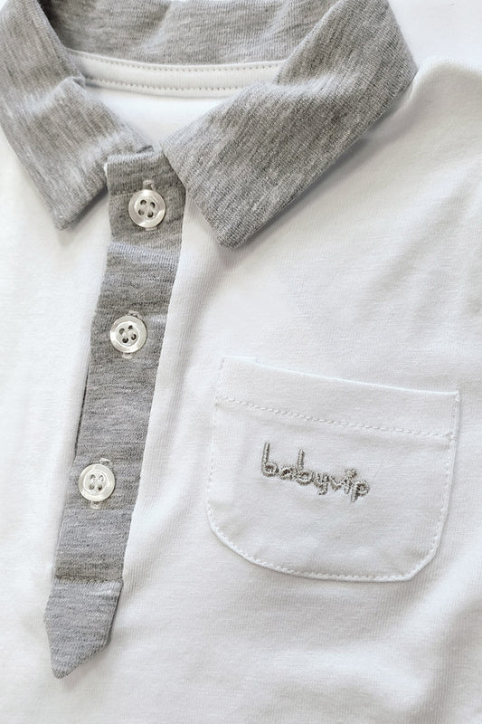 Pagliaccetto mezza manica in cotone elasticizzato con con inserti in contrasto e ricamo