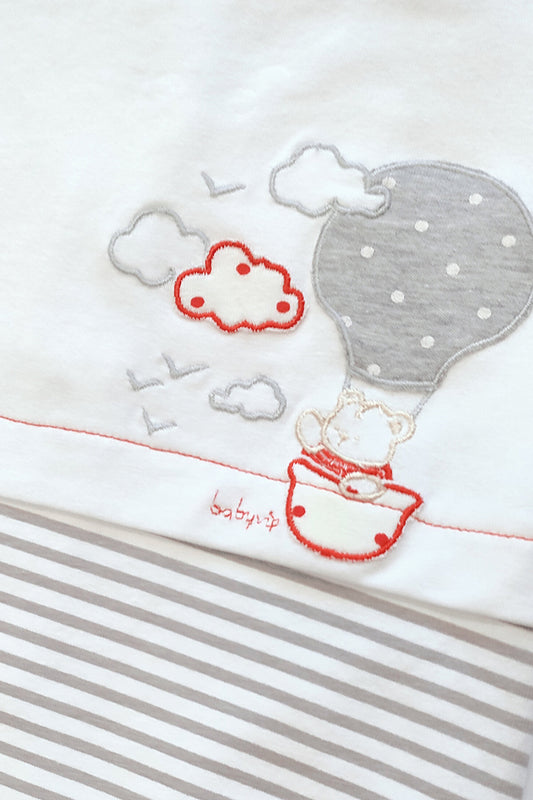 Completo 2 pezzi in cotone Jersey elasticizzato con inserti in tela rigata e ricamino babyvip