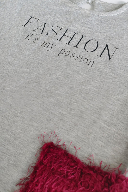 Vestitino in felpa garzata con stampa e tasche in pelliccia