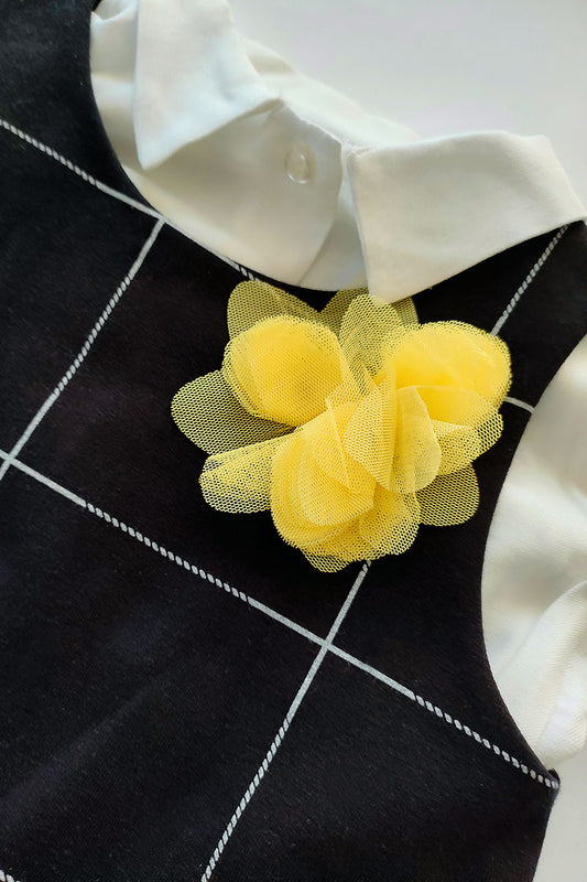 Vestitino smanicato in felpa garzata con balza arricciata + camicia in flanella