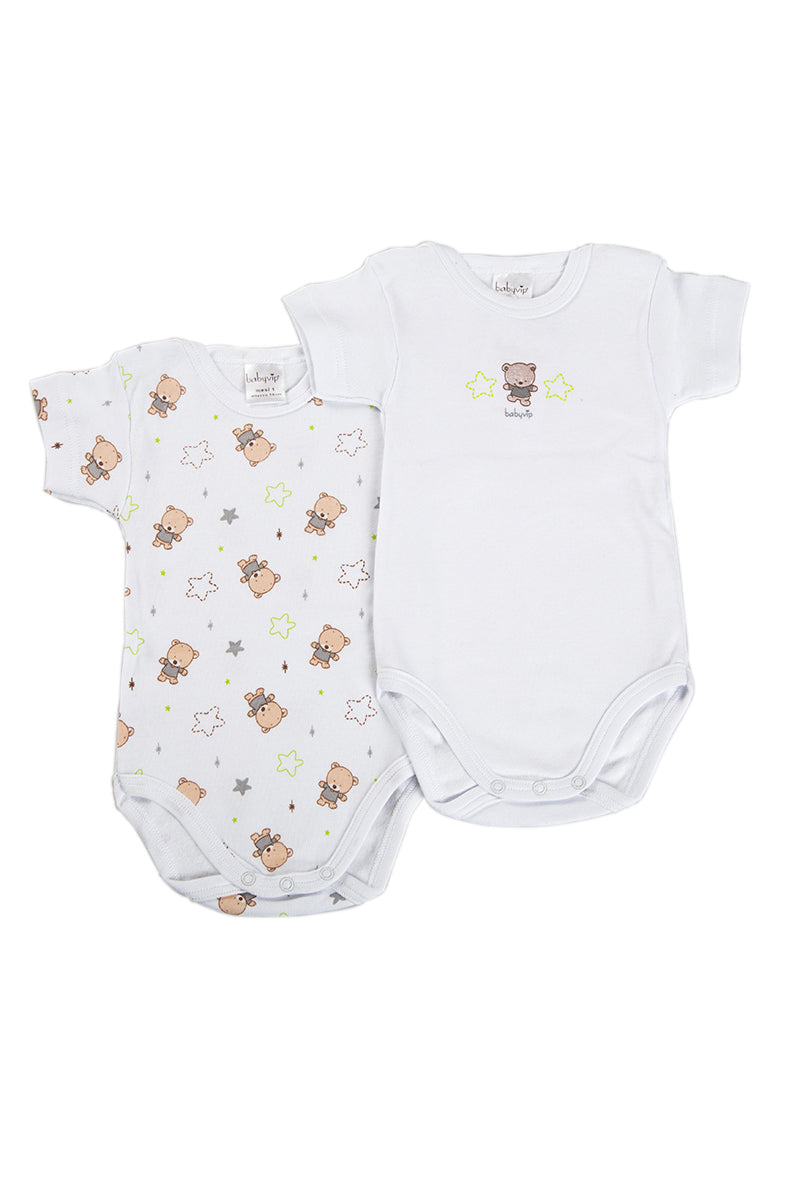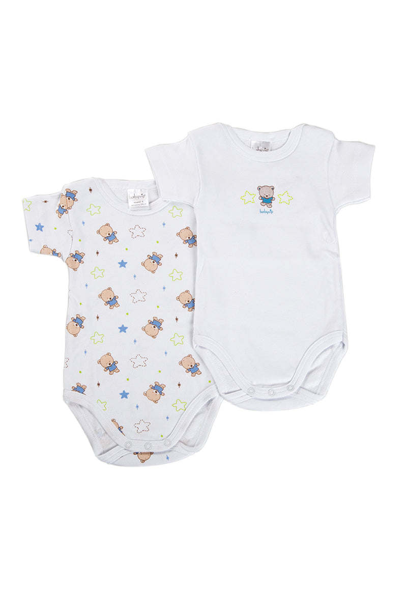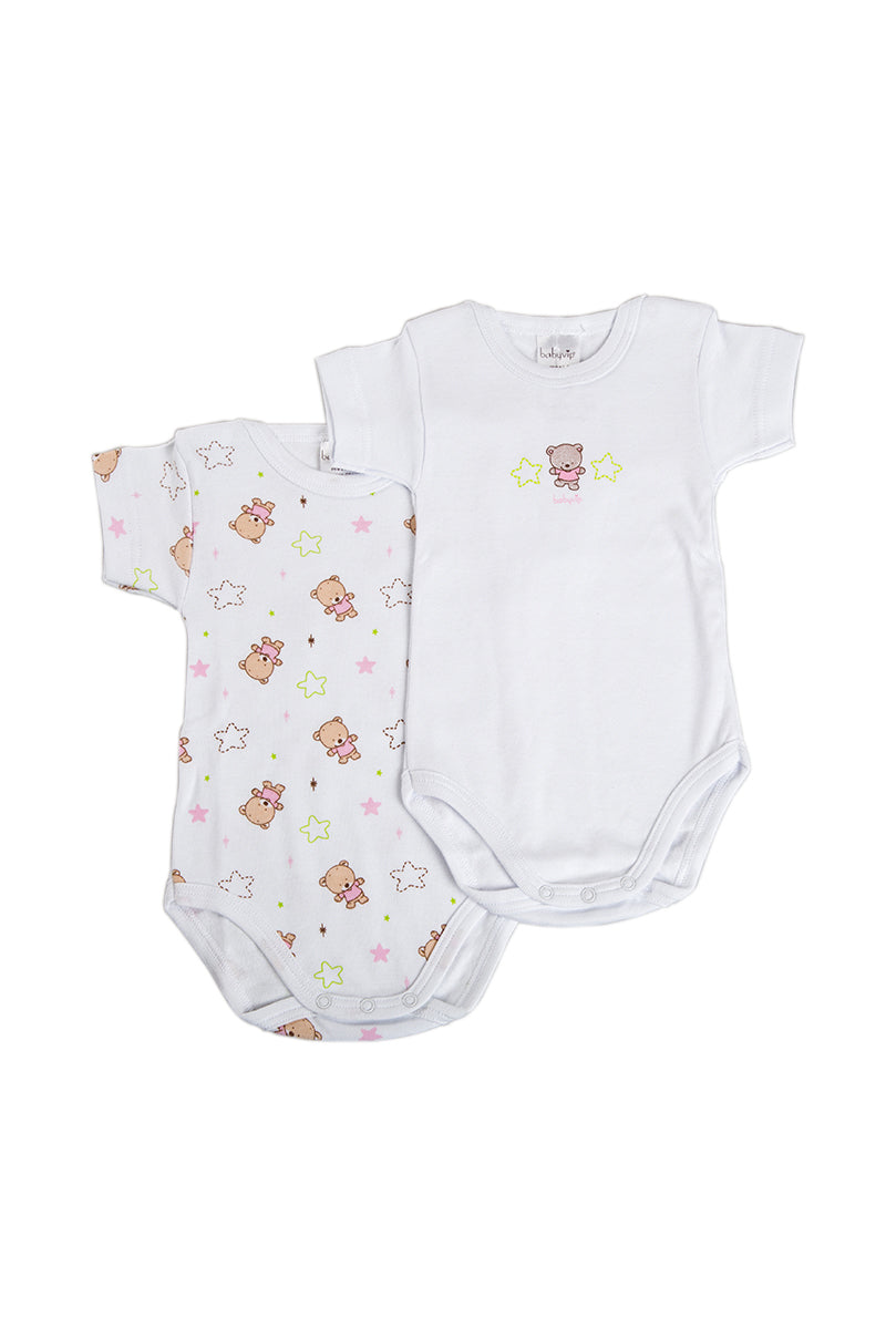 2 Body in caldo cotone mezza manica con chiusura su spalla e stampa