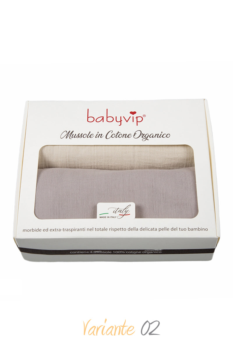 • Le mussole BabyVip sono realizzate con i filati di cotone e altri materiali di elevata qualità;